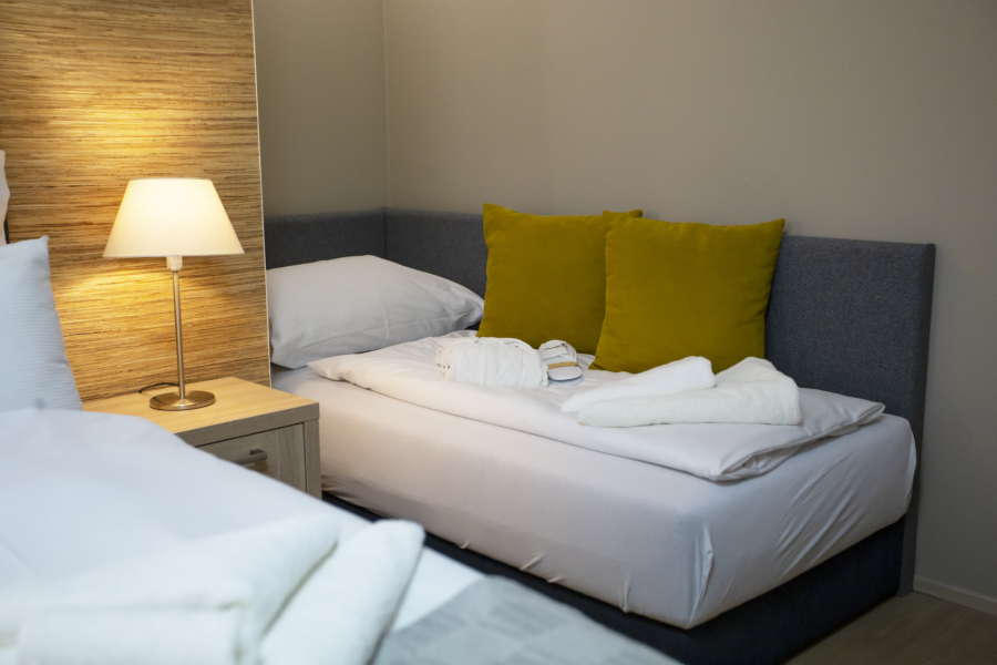 Hodrušský tajch, so samostatnou kúpeľňou, sprchovacím kútom a toaletou. K štandardnému vybaveniu tejto izby patrí fén, káblová TV, wifi, minibar a trezor. Tak, ako v ostatných typoch izieb, aj do tejto je možné umiestniť prístelku alebo detskú postieľku.